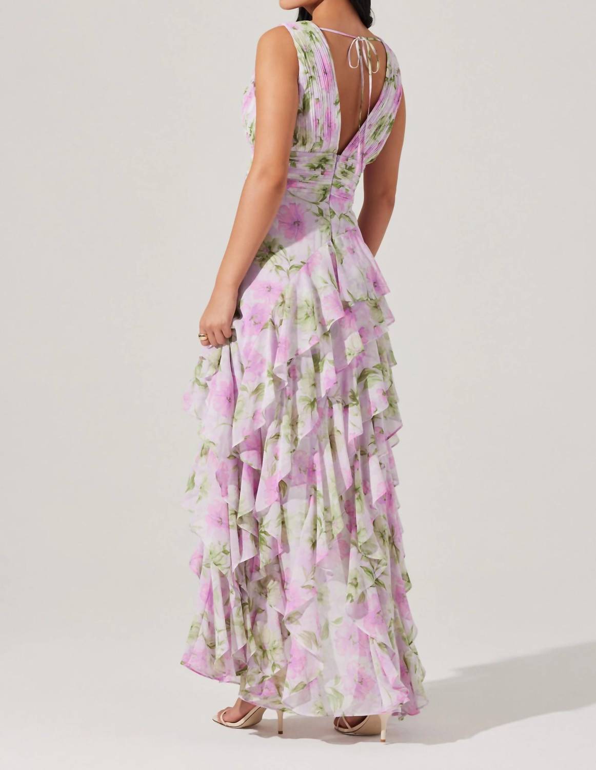 Discover the Women's Cytherea Dress by ASTR, crafted for a boho chic vibe in a sophisticated lavender floral pattern. This sleeveless A-line maxi dress features a flattering V-neck and a convenient pull-on closure, perfect for your next summer vacation. Care instructions are not listed, so please handle with care to maintain the quality of this garment.