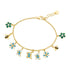 Enhance your accessory collection with the Women's Colorful Flower Butterfly Bee Charm Bracelet by Atlanta Jewelers Supply. This fine jewelry piece comes in a vibrant design featuring nine charming details including green flowers, blue/white flowers, bumblebees, and blue/white butterflies. Crafted from sterling silver with available gold plating, the bracelet measures 7 inches in length with a 1.5-inch extension, totaling 8.5 inches. Adorned in gold color, this bracelet is perfect for adding a playful touch to any outfit.