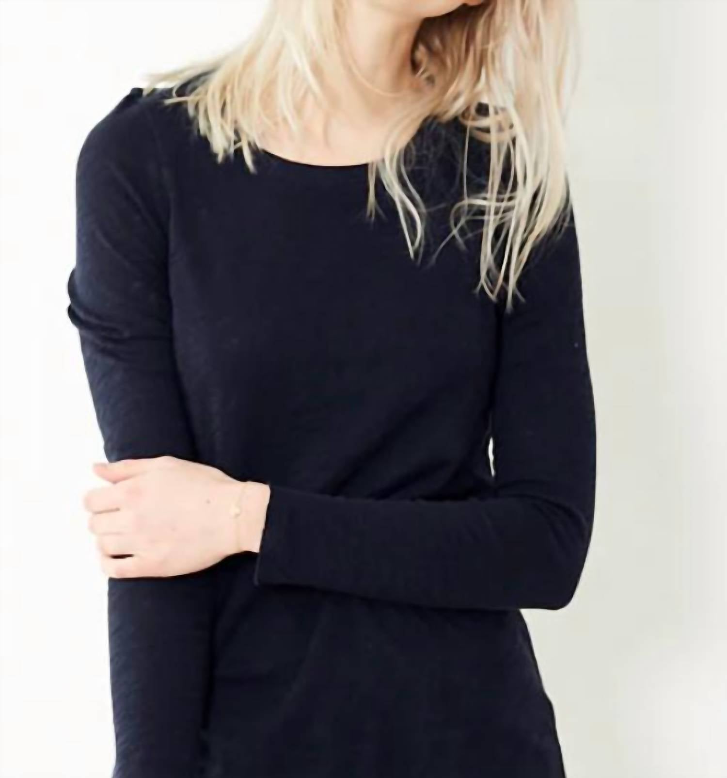 Great fit, cute design, soft fabric. You'll love everything about this long sleeve tee. Luxe cotton jersey. Slightly cropped, boxy shape with longer and wider cut sleeves. This tee is composed of 100% Cotton. Made in Peru. Machine wash cold with like colors. Do not bleach. Tumble dry low and remove promptly. Warm iron if needed.