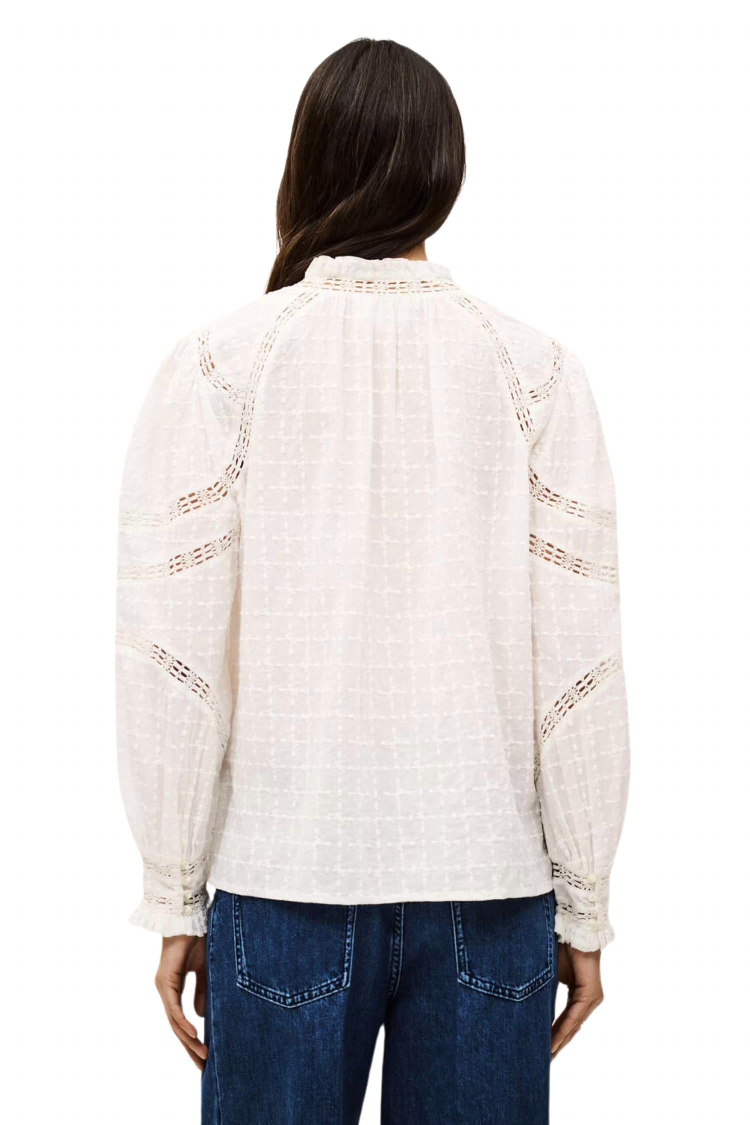 Discover the Brona Shirt by ba&sh, a chic addition to any wardrobe in a delightful Vanille hue. This women's blouse features elbow-length sleeves and a flattering V-neckline, crafted entirely from 100% cotton for breathable comfort. The embroidered detailing adds a unique touch to this solid-patterned piece. Button closure. Suitable for both machine and hand washing.
