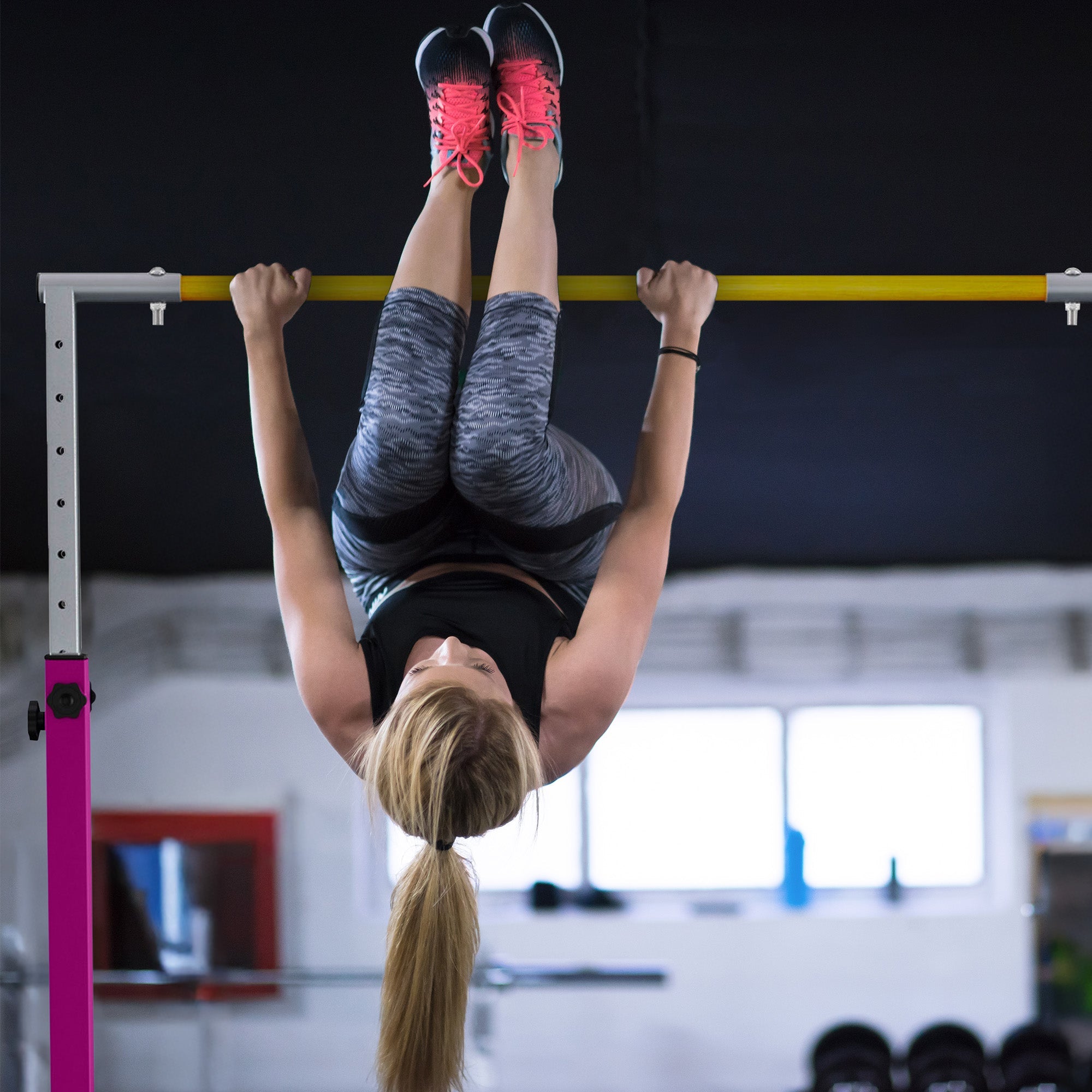 • Gymnastics bar features a triangular structure with anti-slip rubber rings, offering exceptional stability and safety for young gymnasts