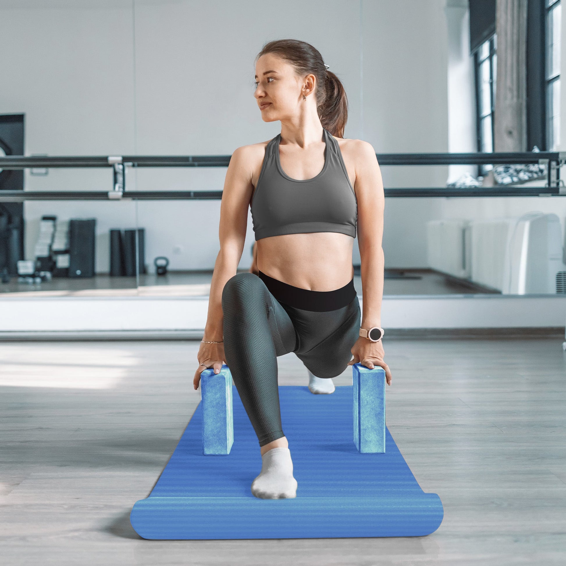 At the heart of this set lies the 0.5-inch thick yoga mat measuring 71 inches long and 24 inches wide, designed to cradle you in a cushioned embrace as you flow through poses. Its luxurious thickness provides unparalleled comfort, while the included carrying strap ensures effortless transportation to and from your sacred practice space. Enhance your stretches and poses with the 2 yoga blocks, offering sturdy stability and support for novice and experienced yogis. Achieve deeper stretches and improve your alignment, unlocking new dimensions of flexibility.