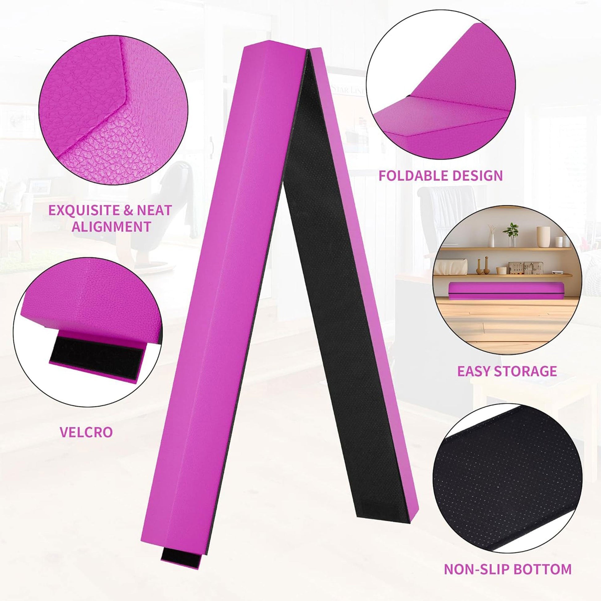 In addition, the high-density foam balance beam is designed to simulate the feel of competition beams, offering a professional experience for gymnastics, cheerleaders, and fitness enthusiasts of all levels. The hook-and-loop fasteners allow you to connect multiple beams, making it adaptable for extended practice sessions. With its lightweight, foldable design, this beam is ideal for both home and gym settings.