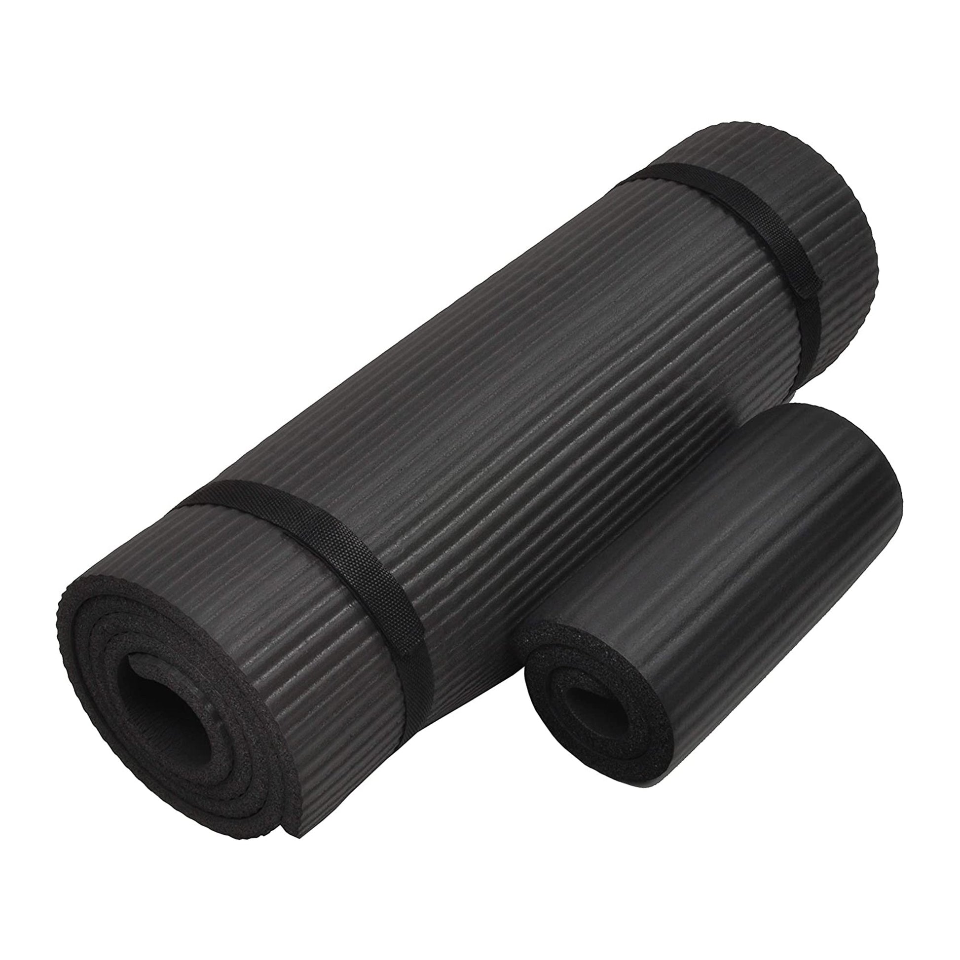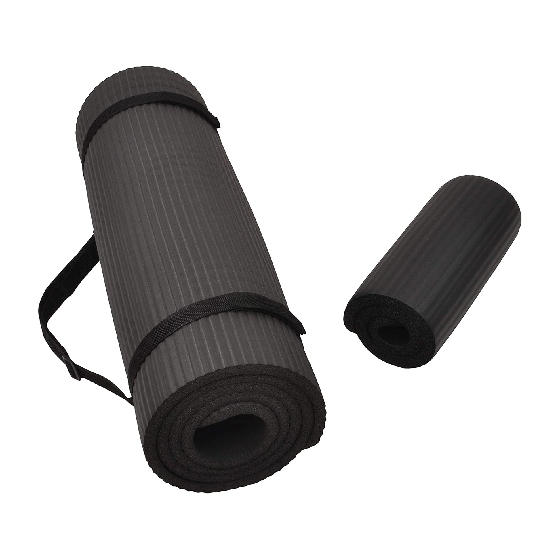 BalanceFrom Fitness GoYoga+ 71x24in Exercise Yoga Mat w/Knee Pad & Strap, Black