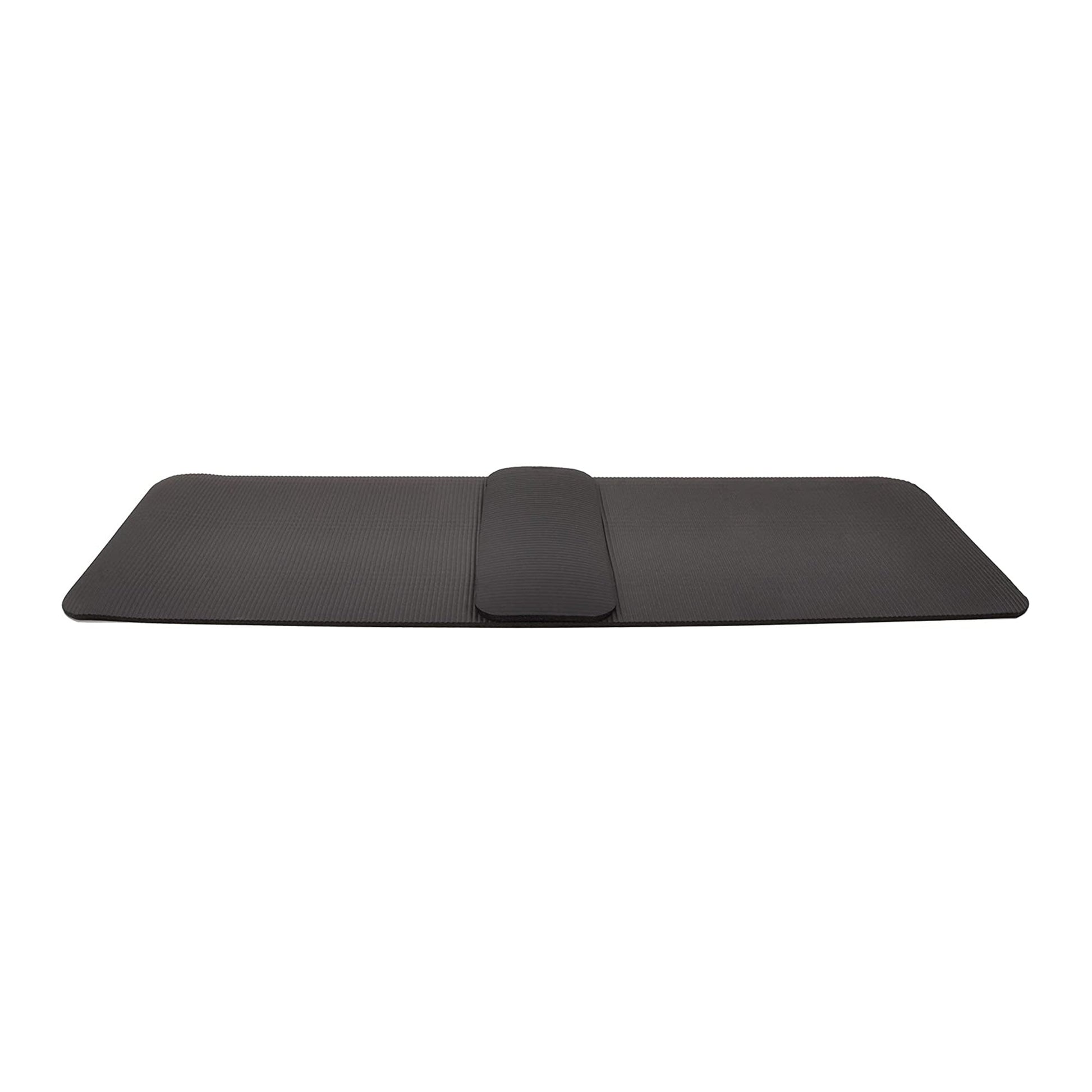 Made from high-density foam, this 1/2-inch thick floor mat comfortably cushions your spine, hips, knees, and elbows on hard floors. For added comfort, this yoga mat also includes a 24 x 10-inch knee pad. The double-sided non-slip surfaces have excellent slip resistance to prevent injury and hold the mat and pad in place. The moisture-wicking technology repels any sweat or spilled liquids that could cause a smelly or stained surface. When the times come for a cleaning, rub down the surfaces with warm water and soap.