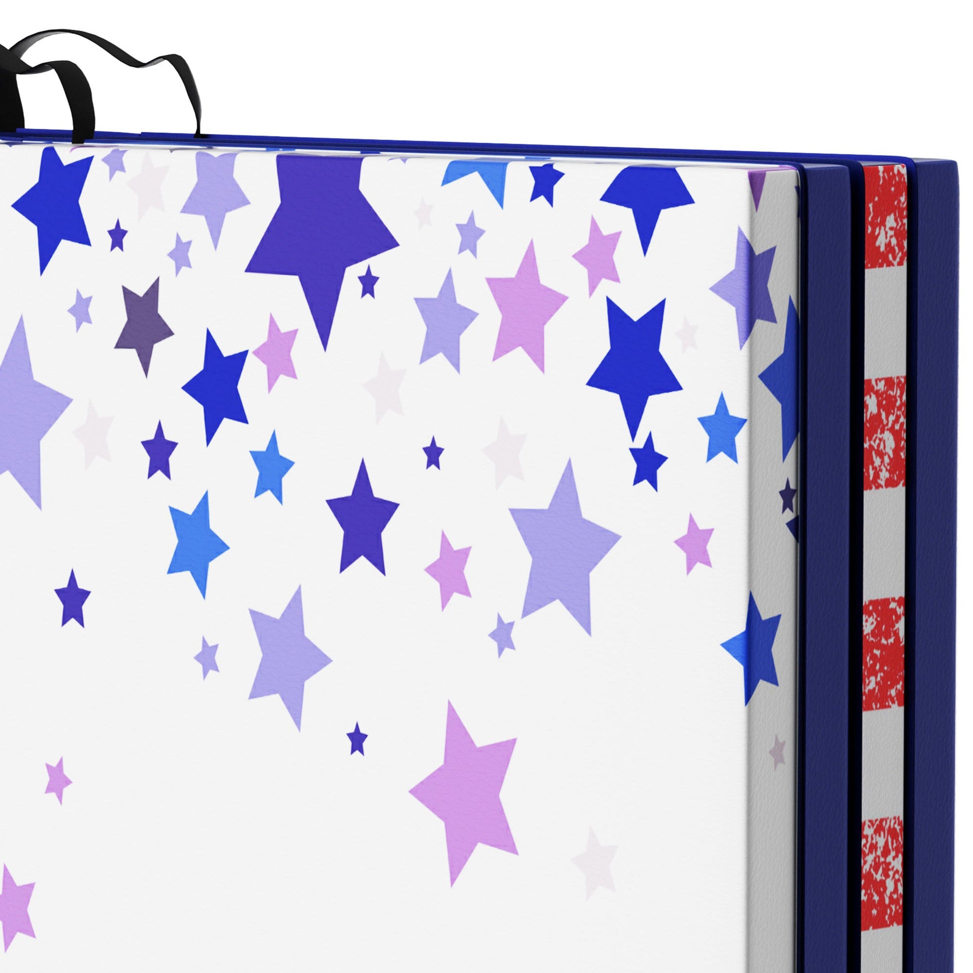 The gymnastics mat features a generous 10-foot length, 4-foot width, and 2-inch thickness of firm high-density EPE foam, tailored for yoga, aerobics, Pilates, and martial arts. Its lead-free vinyl surface withstands puncturing and can be washed with soap and water. Hook and loop fasteners on all sides facilitate easy mat connection, creating an expansive exercise area or tumbling track, and can be secured in a folded configuration. The foldable 4-panel design and built-in handles guarantee convenient storage and transport.