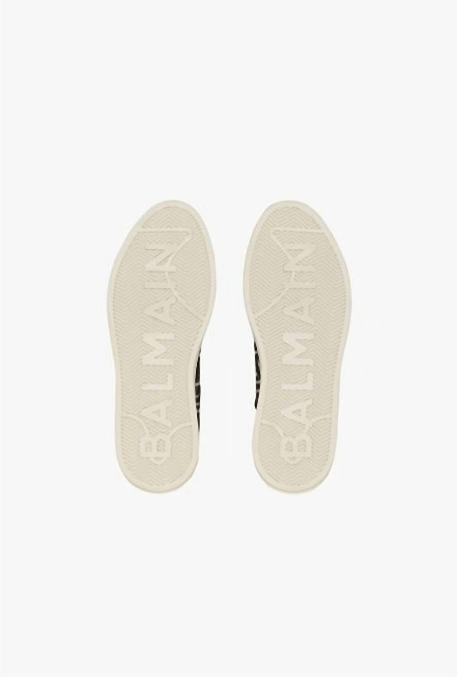 When fashion and function come together seamlessly. Step up your sneaker game with the Women's B-court Bicolor Monogram Jacquard High-top Sneakers from BALMAIN, a perfect blend of style and luxury. Crafted in Italy, these sneakers feature black laces and a stylish tongue with a leather panel adorned with the Balmain logo. The design is completed by an ivory TPU sole showcasing a tone-on-tone Balmain logo, providing both flair and comfort. Main material: 84% Cotton, 16% Polyester. Fits true to size and finished in a chic Black/Ivory color scheme.