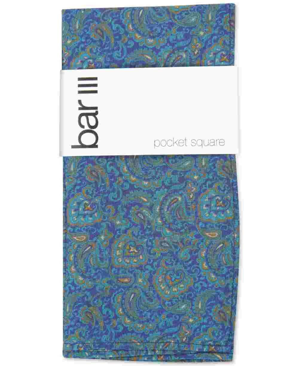 Bar III Men's Stewart Paisley Office Pocket Square Blue Size Regular
