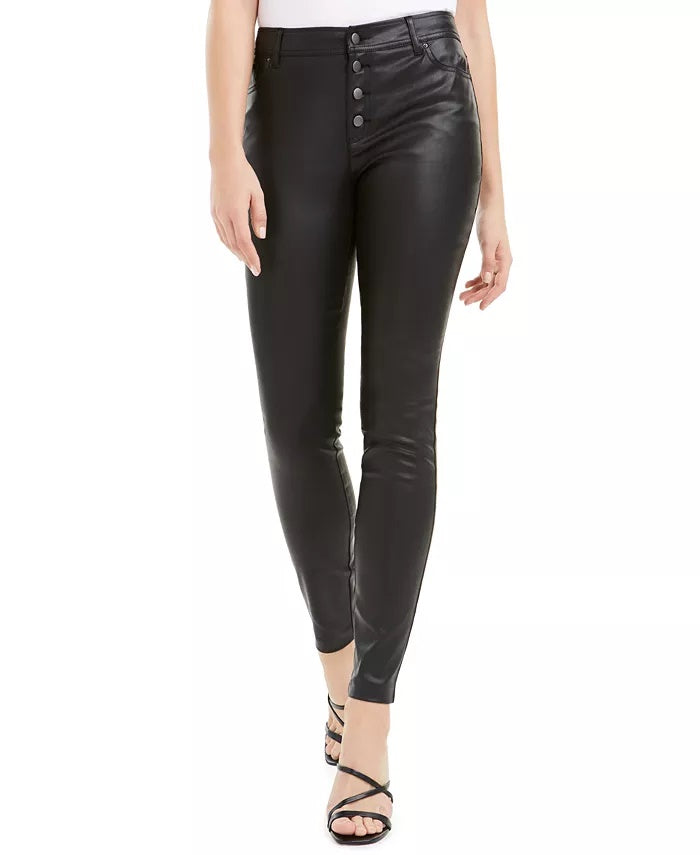 Bar III Women's Coated Button Fly Skinny Pants Black Size 0