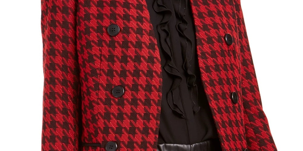 Bar III Women's Houndstooth Collarless Double-Breasted Jacket Black Size 10