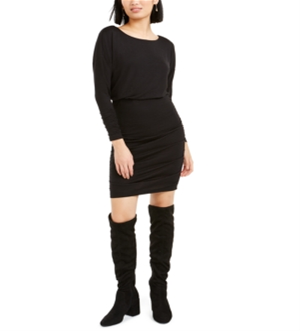 Bar III Women's Long Sleeve Jewel Neck Short Sheath Dress Black Size X-Small