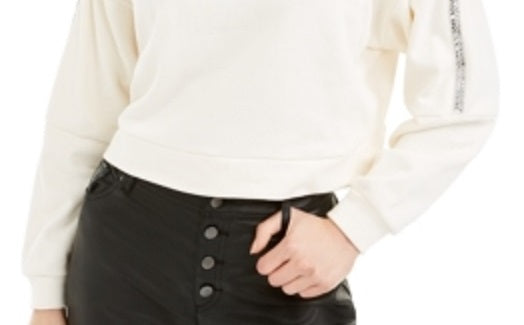 Bar III Women's Long Sleeve Jewel Neck T-Shirt Top White Size XX-Small