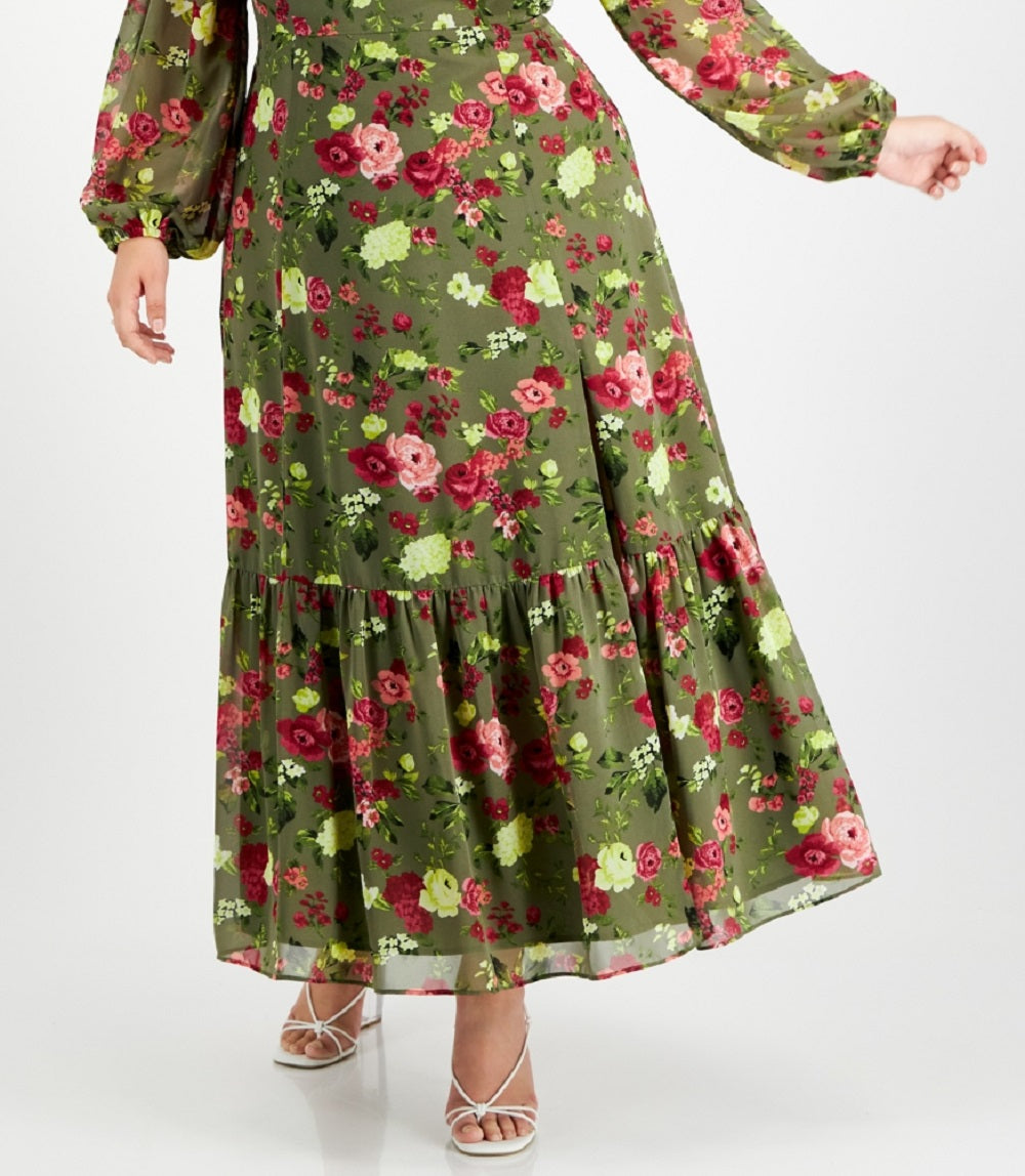 Bar III Women's Plus Printed Bustier Maxi Dress Green Size 3X