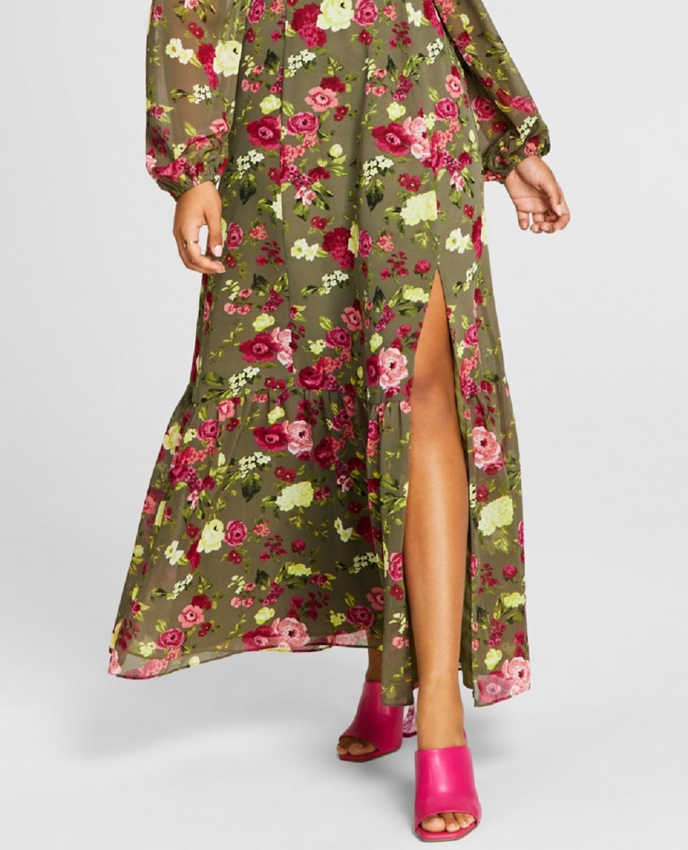 Bar III Women's Printed Bustier Side Slit Maxi Dress Green Size Medium