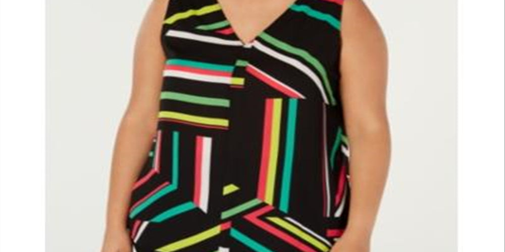 Bar III Women's Printed V Neck Pullover Top Black Size Size 1X