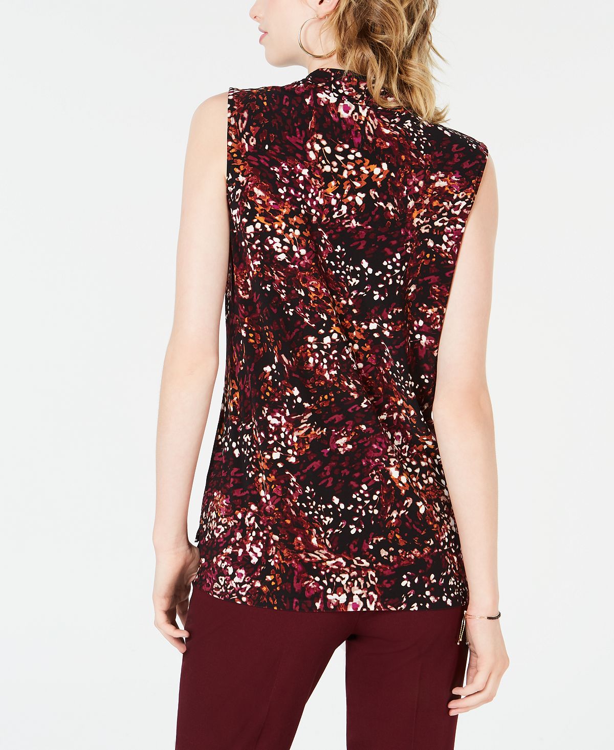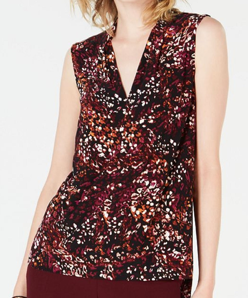Bar III Women's Printed V Neck Shell Red Size Medium