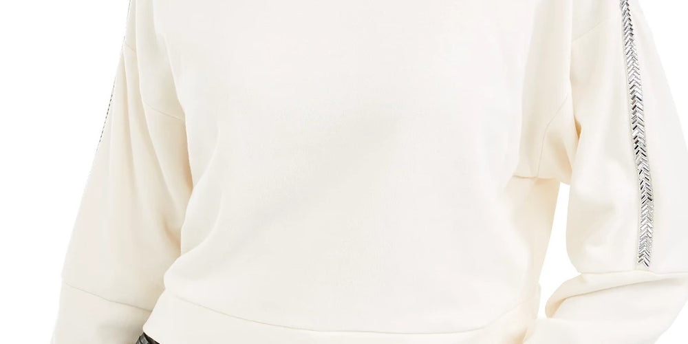 Bar III Women's Shine Stripe Sweatshirt White Size X-Large
