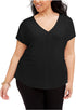Bar III Women's Short Sleeve V Neck Top Black Size 2X