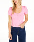 Bar III Women's Tulip Sleeve Henley Top Pink Size X-Small