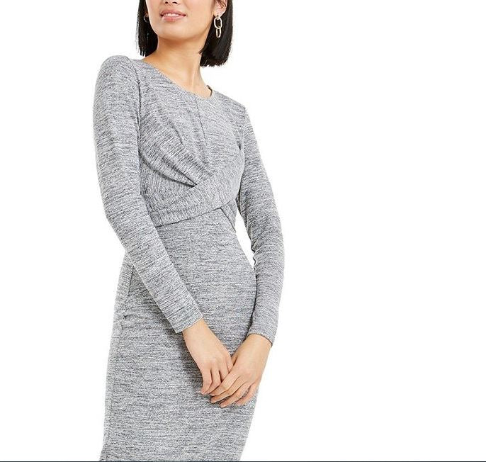 Approx. 43" long from center back neck to hem|Crewneck; fitted silhouette|Pullover styling|Crisscross detail at front|Unlined