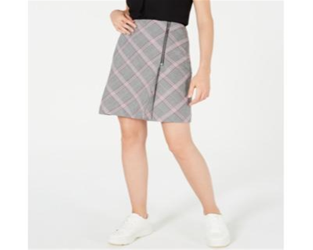 Bar III Women's Zipper Detail Plaid Skirt Black / Red Multi Size 14