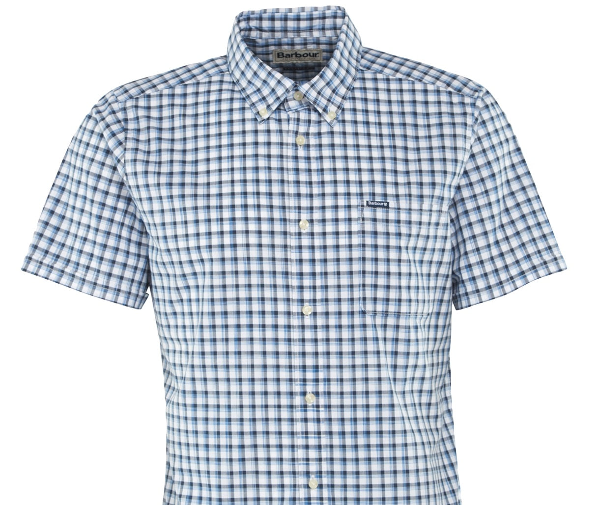 Short sleeved casual shirt in spaced dyed check. | Short sleeve sumer fit| Pocket to wearer's left chest| Branding to wearer's left chest| 100% Cotton| Machine washable| Imported