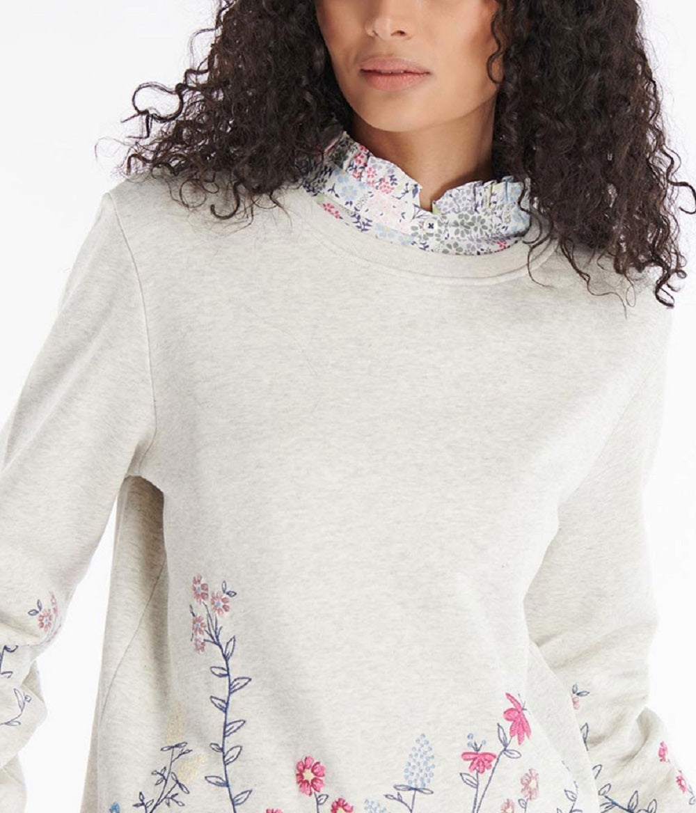 Set in sleeve overlayer with full sleeve featuring floral embroidery growing up from the hem and the cuffs.| Set in sleeve overlayer | Full sleeve featuring floral embroidery growing up from the hem and the cuffs| Gathered peplum and full sleeve| Machine Wash- 30 Degree Celsius| 100% Cotton| Machine Washable