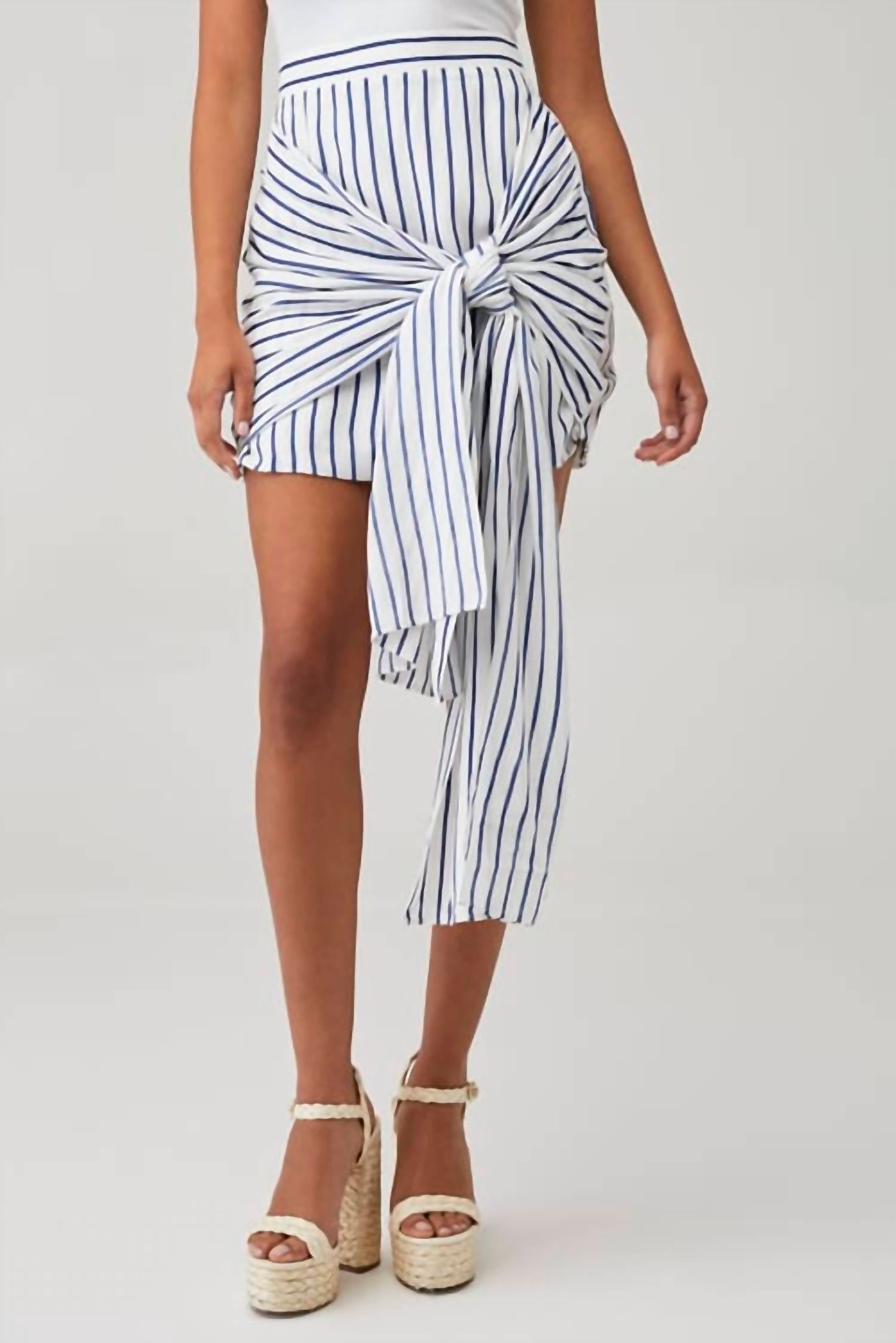 Tuck in your favorite tee for a more laid-back vibe. Elevate your spring wardrobe with the Malira Wrap Skirt by BARDOT, a chic mini skirt perfect for birthday celebrations. Featuring a stylish stripe pattern in navy and white, this women's skirt offers a flattering wrap design with a functional tie detail. Closure: Side zip. Ideal for dynamic occasions, this piece effortlessly combines fashion and functionality.