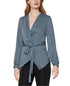 BCBGMAXAZRIA Women's Asymmetric Striped Long Sleeve Wrap Blouse Blue Size Large