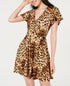 BCX Women's Animal Print Short Sleeve V Neck Short Wrap Dress Dress Brown Size Large