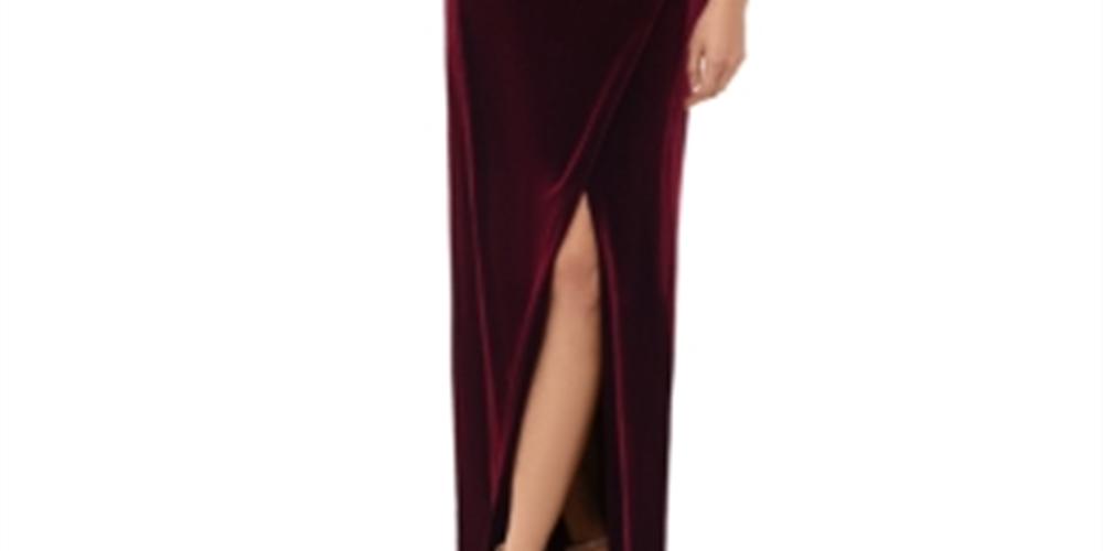 Betsy & Adam Women's Draped Velvet Slit Gown Wine Size 2