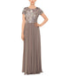 Shimmering sequins in two hues set an elegant tone for a very flattering Betsy & Adam gown suffused with modern glamour.| Long length| High neckline; hidden back zipper with hook-and-eye closure| Multitone sequined floral design at bodice; solid chiffon skirt| IMPORTANT NOTE; This item arrives with a return tag attached and instructions for removal. Once the tag is removed from the dress| this item cannot be returned.