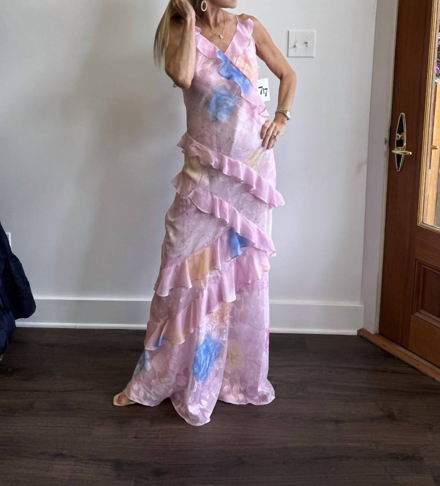 Style this maxi with your favorite statement necklace and sandals for the perfect look. Introducing the V-neck Ruffle Maxi Dress by BEULAHSTYLE, a captivating choice in Pink Multi perfect for summer occasions. This women’s maxi dress features delicate spaghetti straps and a flattering V-neck, enhancing its sheath silhouette with a floral pattern ideal for housewarming events. Its design effortlessly combines elegance and playfulness, making it a standout pick for any celebrations. Crafted to bring quiet luxury to your wardrobe, this dress takes center stage at any gathering.