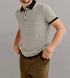 Elevate your wardrobe with the Billy Reid Stripe Sweater Polo Shirt in elegant Tinted White/Black. This short sleeve polo combines a luxurious sweater construction with soft cotton, showcasing a jacquard birdseye stripe for added texture. Featuring a button closure and a tailored slim fit, it effortlessly transitions from casual to refined occasions. Care is simple with machine wash and tumble dry. Model is 6'1" wearing a size medium.