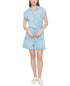 Black Tape Women's Short Sleeve Tie Waist Mini Dress Blue Size Large