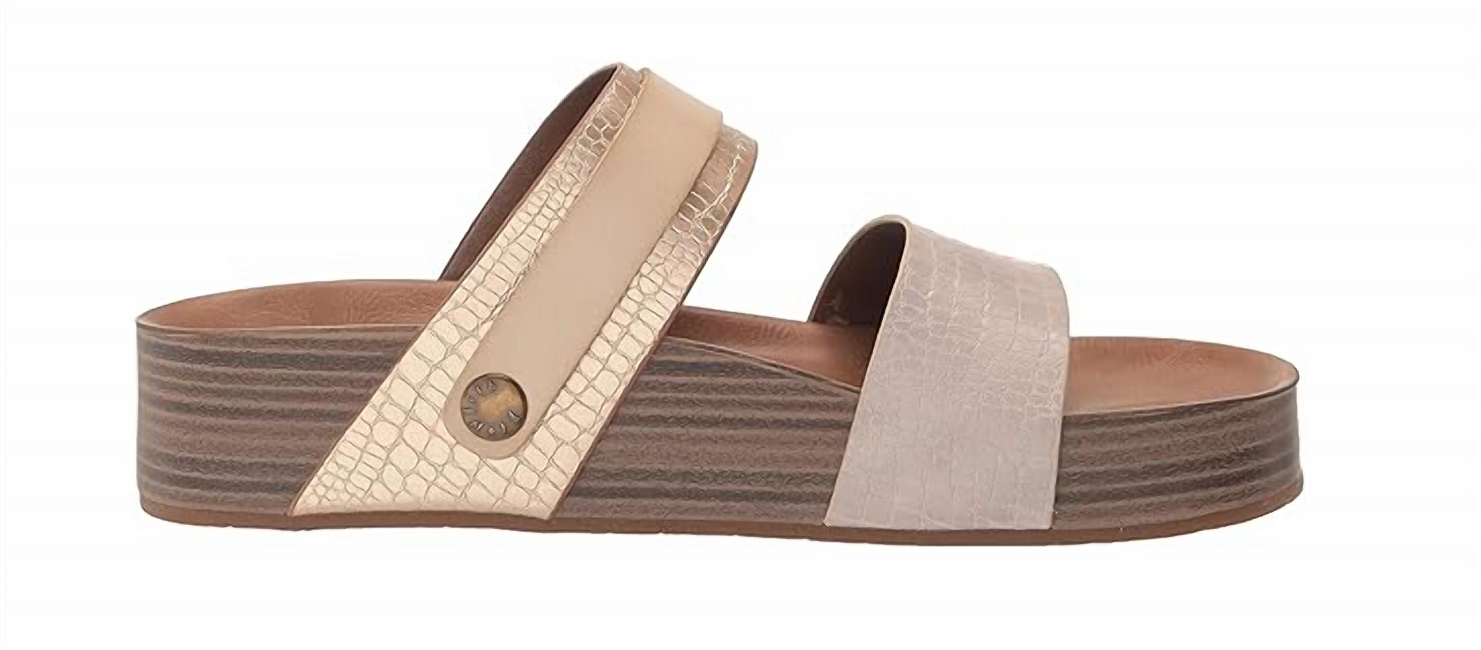 Flowy dresses, cropped pants, and even jumpsuits... this sandal works with them all! This platform sandal features adjustable straps, a flexible molded footbed, and a slip-on design. It includes a branded button and metal buckle closure, crafted from a vegan-synthetic upper.