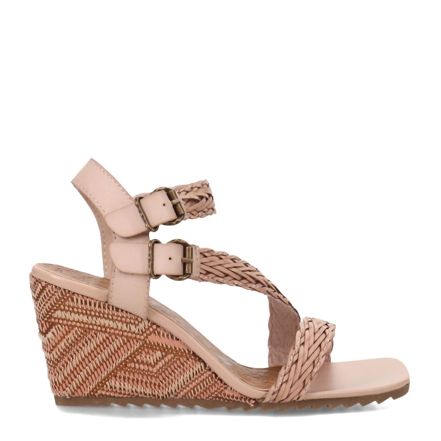 Flowy dresses, cropped pants, and even jumpsuits... this sandal works with them all! Step into style with the Women's Oksana Wedge Sandal by Blowfish, beautifully crafted for warm days in a Lotus Dyecut hue. Featuring a manmade upper with a sophisticated strappy design, these sandals boast dual ankle straps with adjustable buckle closure for a perfectly secure fit. The textured 3" wedge heel adds a chic touch, complemented by the molded cushion footbed that ensures lasting comfort. With a sporty manmade outsole and open toe design, these sandals are your go-to for both comfort and flair.