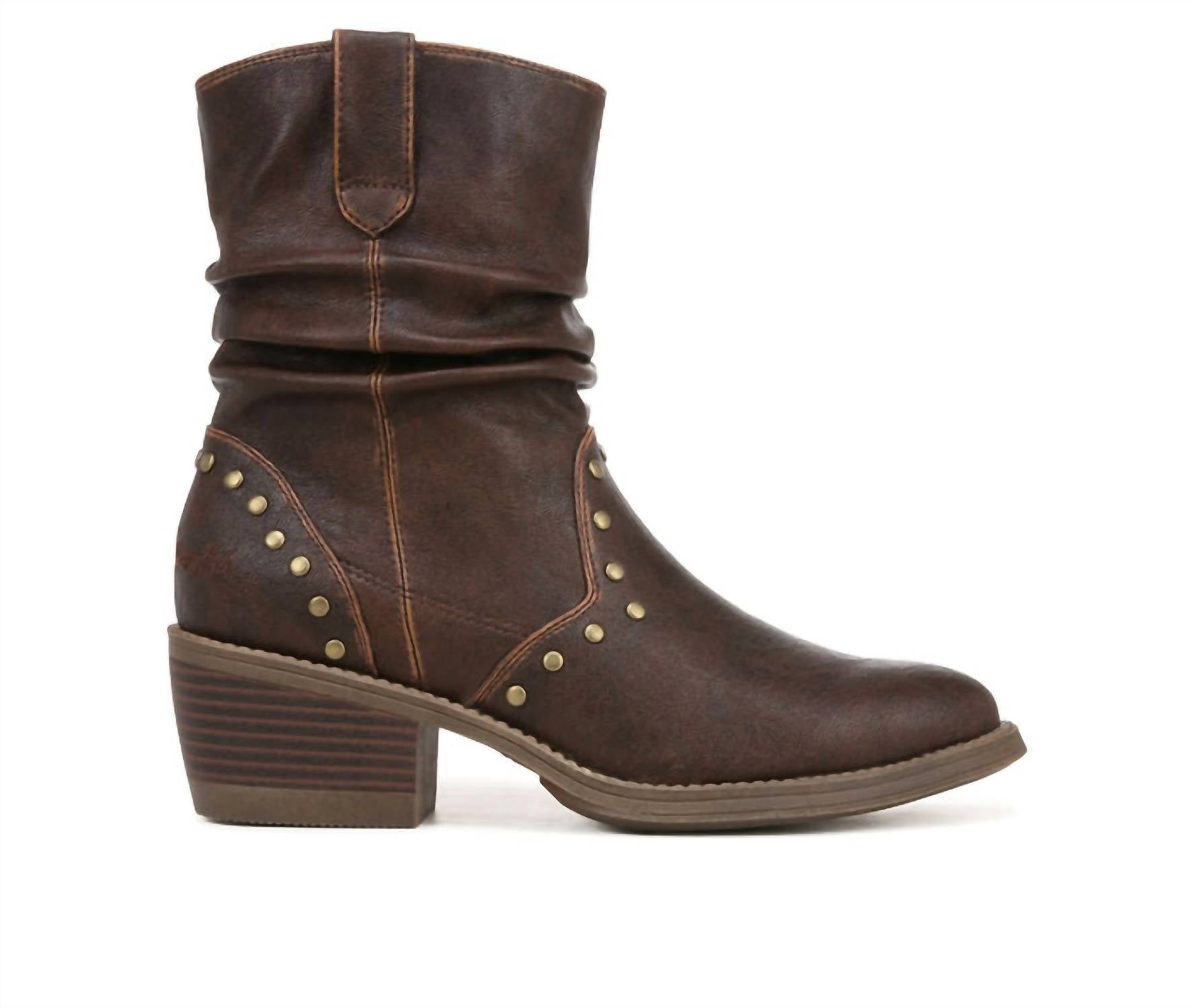 Say hello to the perfect, most versatile boot. The ankle height makes this style easily transition from day to night. Wear them with your favorite skinny jeans and tee for a more laid back look, or pair them with your favorite mini dress and jacket for a night out on the town. These booties feature a slouch silhouette, western stitching, and stud details for added edge. Made with a PU faux leather upper, they have an instep zipper for easy entry, an almond toe, and a foam cushioned insole. The heel is 2" with a 4" shaft, and the outsole is synthetic.