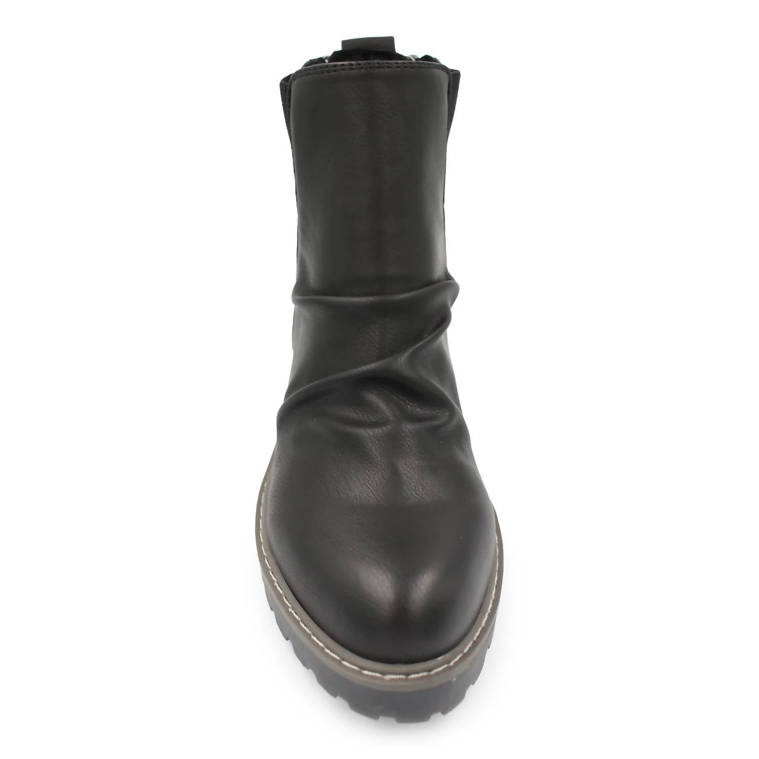 Say hello to the perfect, most versatile boot. The ankle height makes this style easily transition from day to night. Wear them with your favorite skinny jeans and tee for a more laid back look, or pair them with your favorite mini dress and jacket for a night out on the town. True to size. Faux leather canvas made with vegan materials. Chelsea-style boot with rounded toe. Dual zipper closures on heel. Elastic gored sides. Subtle reptile print detailing.