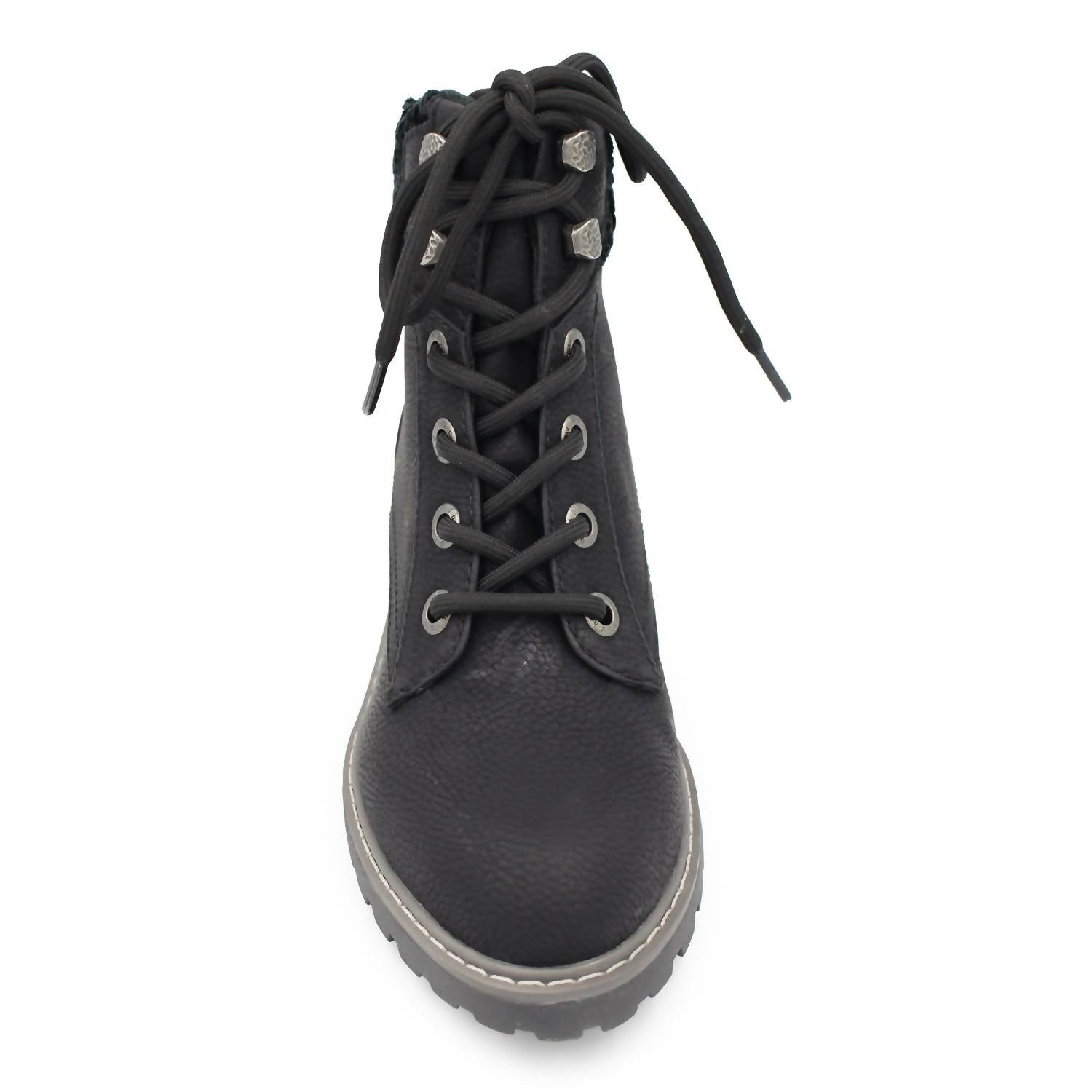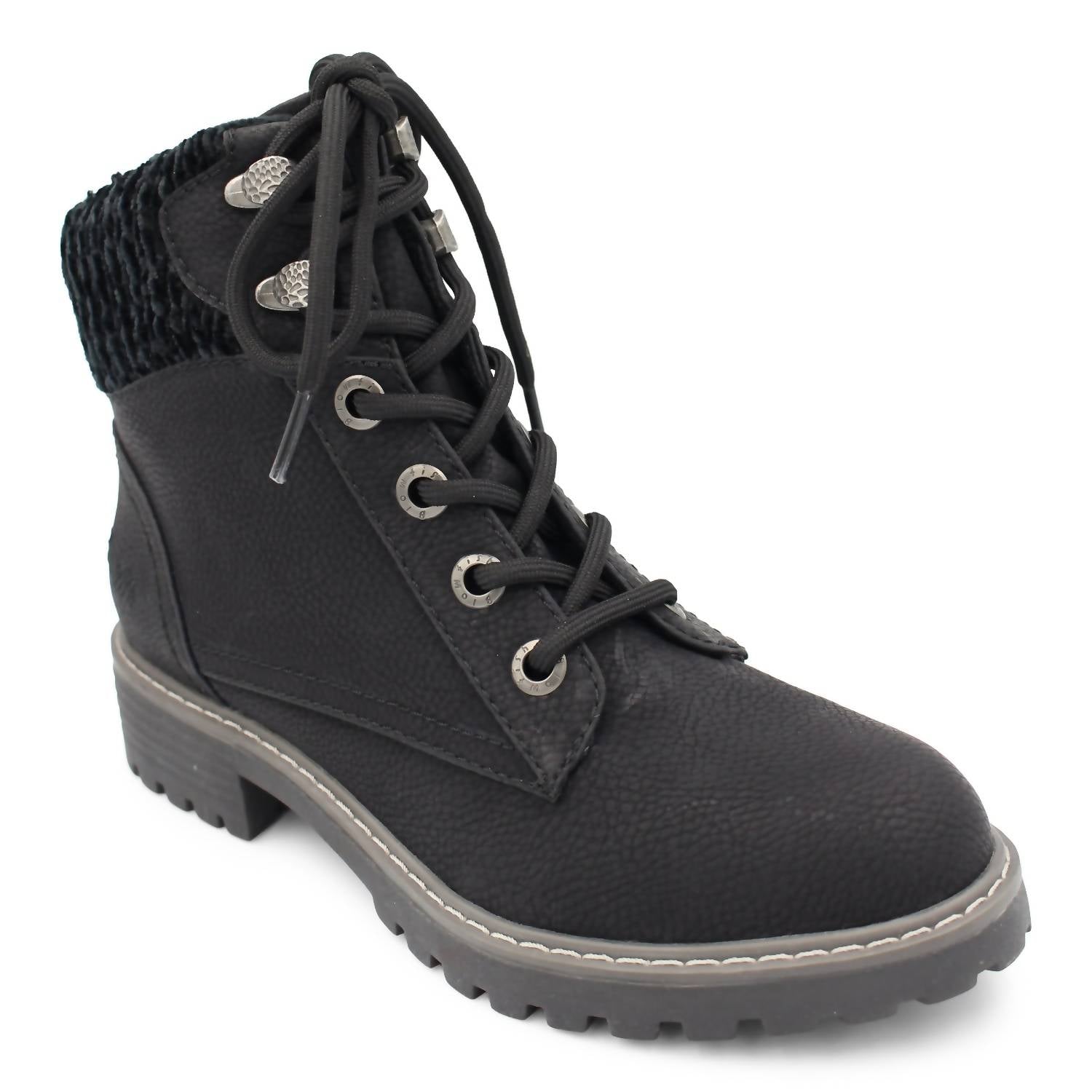 Say hello to the perfect, most versatile boot. The ankle height makes this style easily transition from day to night. Wear them with your favorite skinny jeans and tee for a more laid back look, or pair them with your favorite mini dress and jacket for a night out on the town.The Ruthey combat cool bootie features an extra soft knit cuff, decorative dented buttons for that Blowfish Malibu touch. Cushioned footbed.