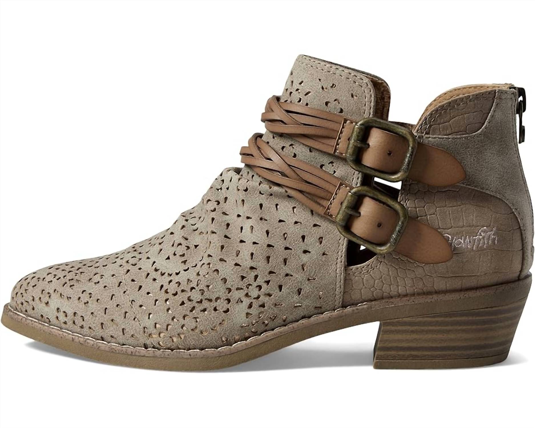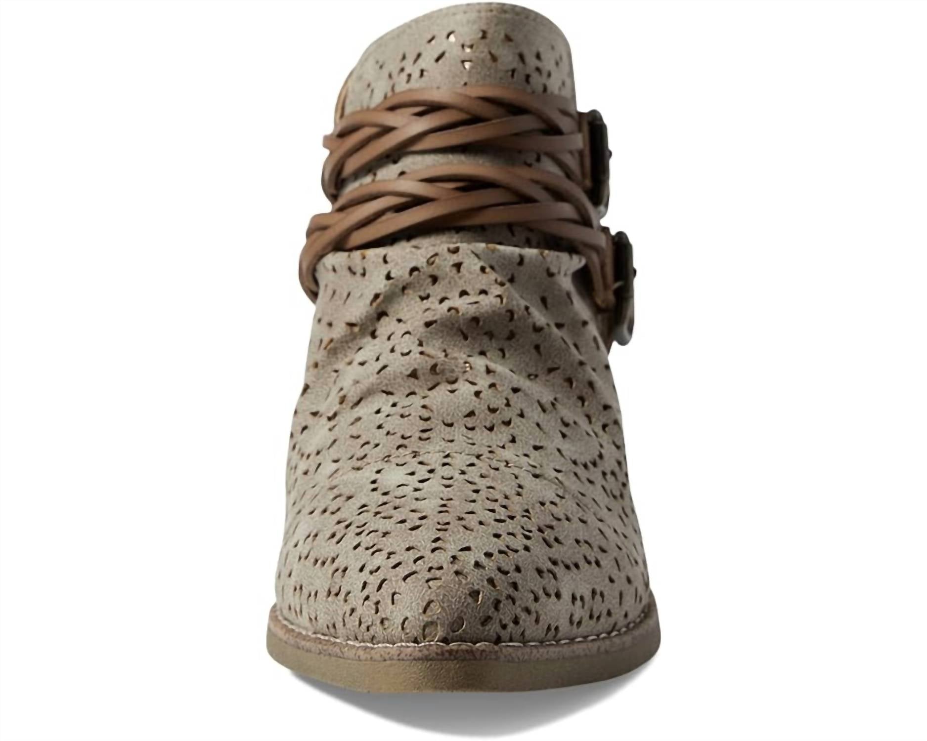 Say hello to the perfect, most versatile boot. The ankle height makes this style easily transition from day to night. Wear them with your favorite skinny jeans and tee for a more laid back look, or pair them with your favorite mini dress and jacket for a night out on the town. Synthetic upper with laser-cut design. Synthetic and textile lining. Cushioned BLOOM™ foam insole. Dual braided straps with buckle closure. Zippered closure on the back. Pointed toe silhouette. Cutout details on the side. Stacked block heel. Durable synthetic outsole. Imported. Product measurements were taken using size 9, width M. Please note that measurements may vary by size. Weight of footwear is based on a single item, not a pair. Measurements: Heel Height: 1 1⁄2 in. Weight: 12.5 oz. Shaft: 5 in.