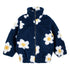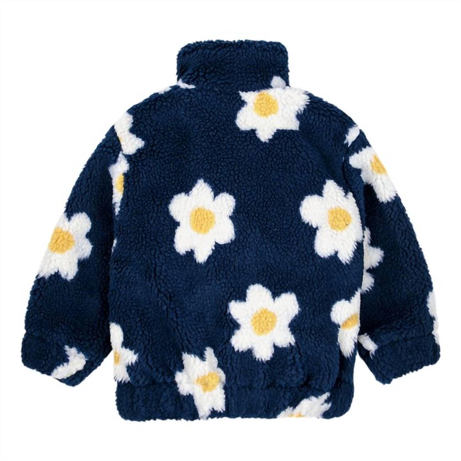 Discover the Girl's Flower Fleece Coat by Bobo Choses, a cozy essential in navy blue with charming flower power details. This casual jacket features a turtleneck collar, embroidered logo, and a convenient zip closure. It's crafted from 100% recycled polyester, offering both comfort and sustainability. Care instructions include machine washing, with no tumble drying or dry cleaning needed.