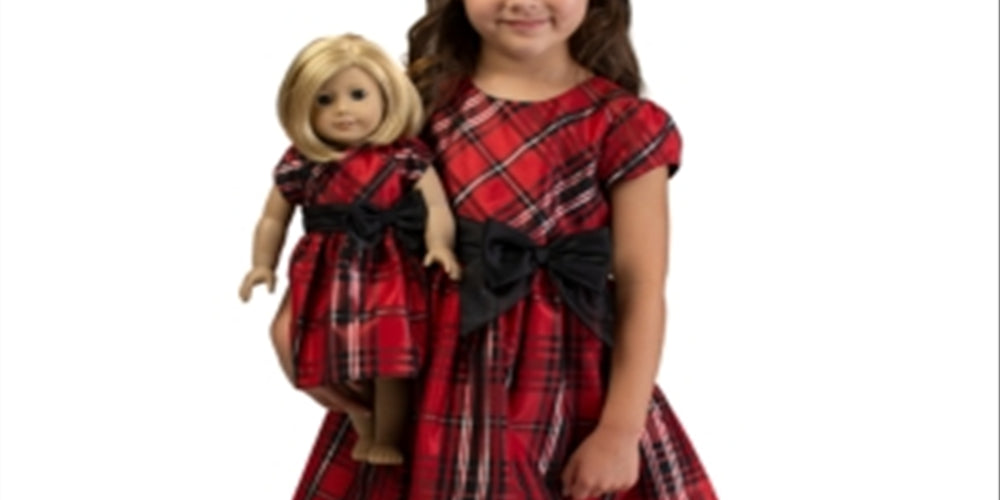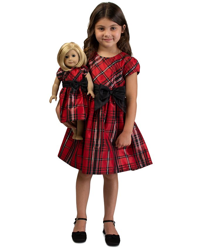 Bonnie Toddler Girl's 2 Pc Plaid Bow Dress & Doll Dress Set Red Size 2T