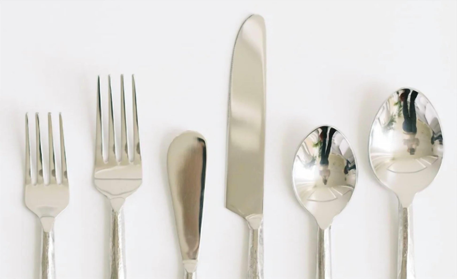 Enhance your dining experience with the Forged Flatware 6 Piece Set by borrowed BLU, designed to combine modern lines with natural forms. Each piece features hand-forged handles and is crafted from durable stainless steel in a classic silver hue. This elegant set includes a salad/dessert fork, dinner fork, butter knife, dinner knife, teaspoon, and dinner spoon, perfect for a formal place setting. Care: Dishwasher safe; use a soft cloth and mild detergent, and avoid soaking for prolonged periods.