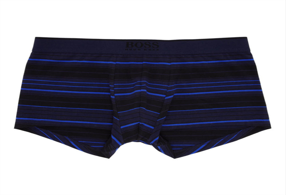 Stretch cotton jersey boxer briefs striped in blue| navy| and black| Mid-rise| Knit logo and stripe in black at navy elasticized waistband| Supplier color; Blue/Black