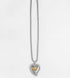 Heart-to-heart. These silver and gold necklace features a heart-shaped pendant with a pearl-encrusted border, showcasing a striking gold cherub in the center for a beautiful contrast of metals.