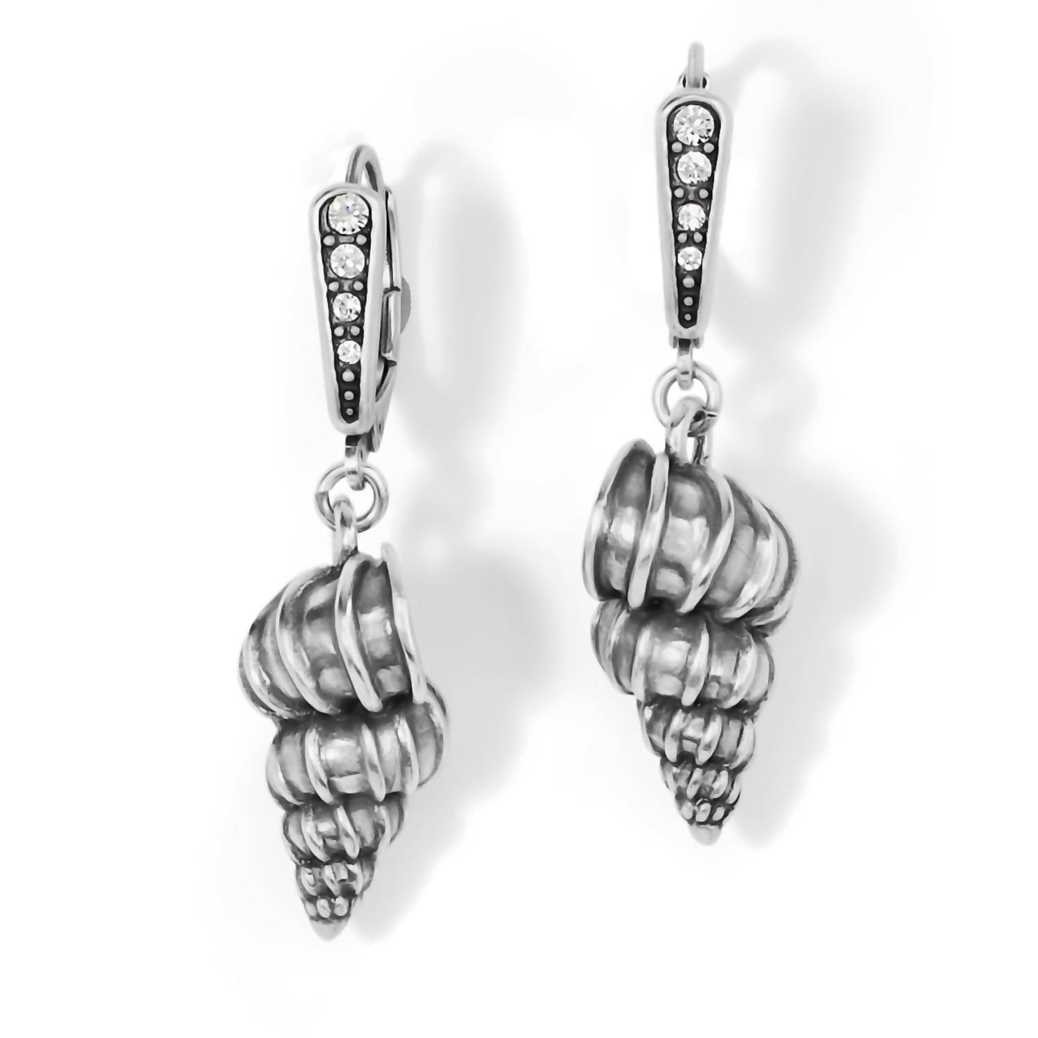 Easy and elegant earrings to complement any outfit. Add a touch of beach-inspired elegance with the Women's Shells Leverback Earrings by Brighton. These earrings feature a Wentletrap shell design, embellished with fine quality hand-set crystals in a silver-plated finish. With a post type and lever back clasp, they ensure a secure fit and comfortable wear. The earrings have a width of 7/16" and a drop of 3/4", perfect for adding subtle sophistication to any outfit.