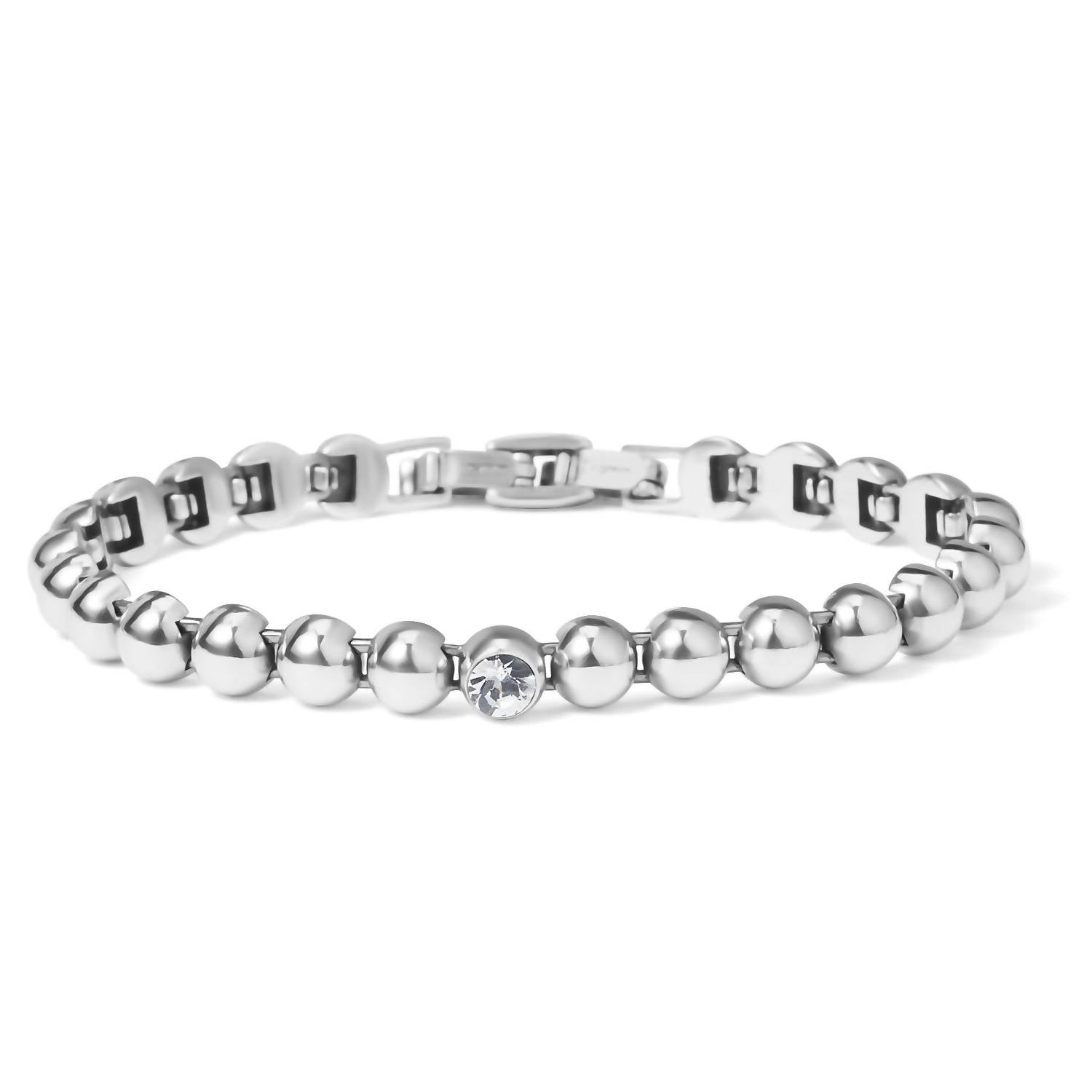 Stacked or solo - you can't go wrong with this bracelet. Introducing the Women's Twinkle Granulation Bracelet by Brighton, an exquisite piece from the Twinkle Trio Collection. Crafted from fine quality crystal and elegantly finished with silver plating, this bracelet sparkles with sophistication. It features a convenient fold over clasp closure, offering a length between 7" and 7 3/8" and a width of 1/4". Perfect for adding a touch of elegance to any outfit.