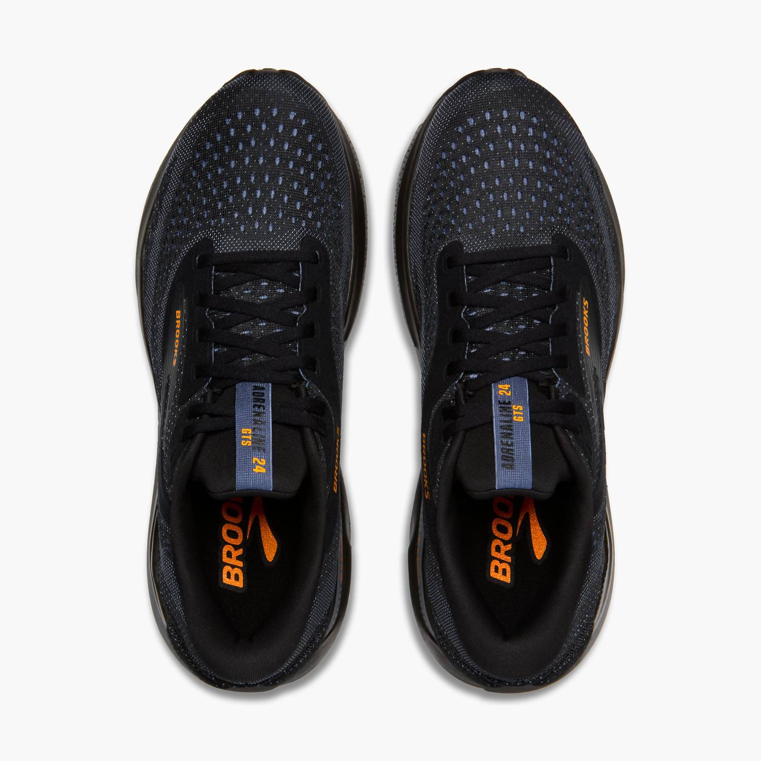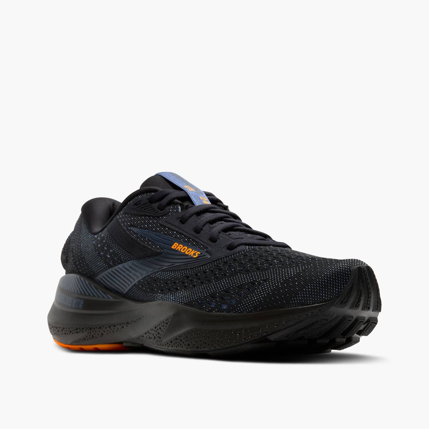 Step into the Men's Adrenaline GTS 24 Running Shoes by BROOKS, featuring updated dynamic cushioning for a lightweight, soft experience. Designed with a breathable mesh upper and a secure fit, these shoes incorporate the trusted GuideRails® support system to minimize excess motion. Sustainability meets performance, with 62.7% recycled materials in the upper, effectively diverting over eight plastic bottles from landfills. Weighing 10.0oz (283.5g) and featuring a 12mm midsole drop, these black/country blue/orange shoes are perfect for road running and walking.