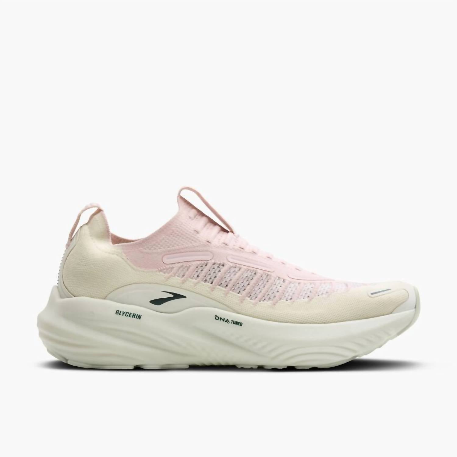 The Women's Brooks Glycerin 22 SE Sneakers in Orchid/Ice Bluewash/Pine offer advanced comfort with super-soft DNA Tuned midsole technology and innovative nitrogen-infused cushioning. Designed with 61.3% sustainability in mind, these sneakers feature recycled materials in the upper, supporting eco-friendly fashion. Ideal for long road runs, they provide smooth, stable transitions with varied cell sizes in the heel and forefoot for plush landings and energizing toe-offs. Weighing 10.2 oz with a 10mm midsole drop, these sneakers boast a flat heel at 0.39 inches, making them perfect for fitness workouts and athleisure trends.
